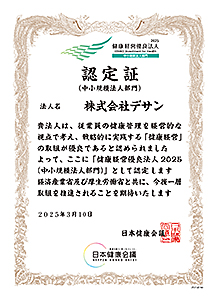 私たちは、社員の健康増進を重視し、健康管理を経営課題として捉え、その実践を図ることで従業員の健康の維持・増進と会社の生産性向上を目指します。